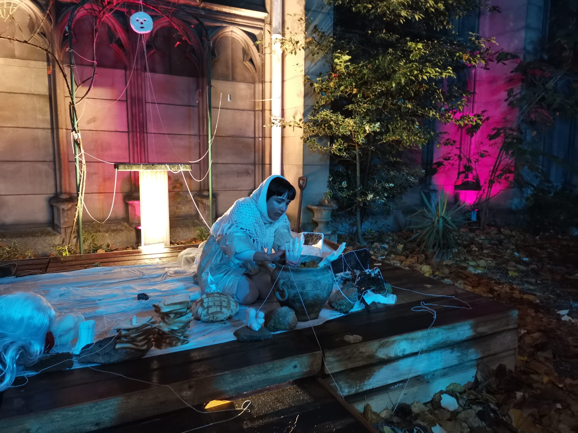 J’ai écrit cette performance lorsque je travaillais à la pompe funèbre et que le temps nous était volé. C’est parti de mon envie de retrouver du temps pour le soin et le rêve. Cette performance est comme un rassemblement de gestes qui m’apaisent ou me bousculent. Elle est aussi un paquet de sensations que je cherche à retrouver, un rituel inconnu ou une expérience de déconnexion.